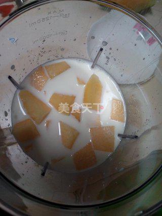 - 将哈密瓜块和低脂牛奶放入搅拌机中,加入适量蜂蜜。